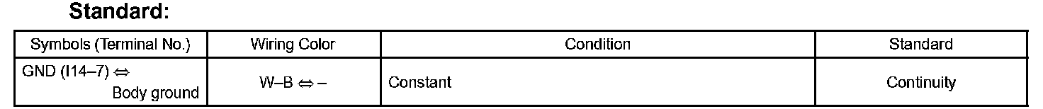 a. Disconnect the I14 amplifier connector, and check the continuity between the terminal of the wire harness side connector and body ground.