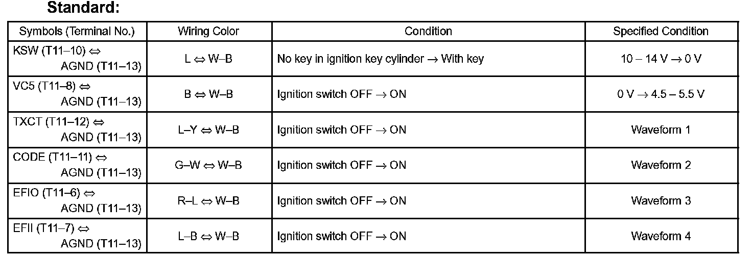 a. Disconnect the T11 ECU connector, and check the voltage or continuity between each terminal of the wire harness side connector.
