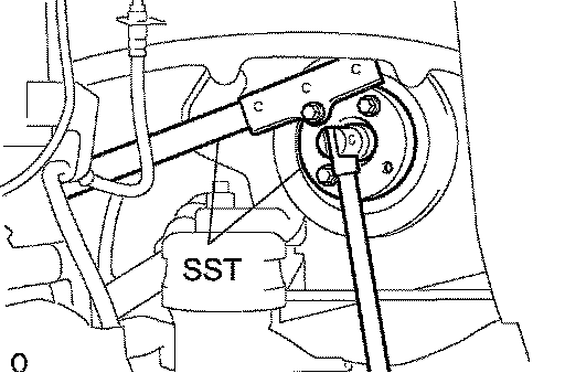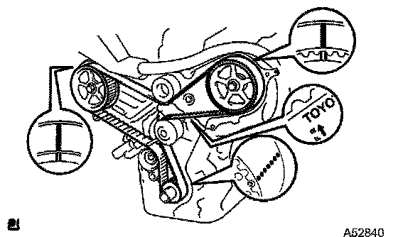 f. Using SST, turn the timing pulleys, and align the timing marks of the timing pulleys with the No. 3 timing belt cover.