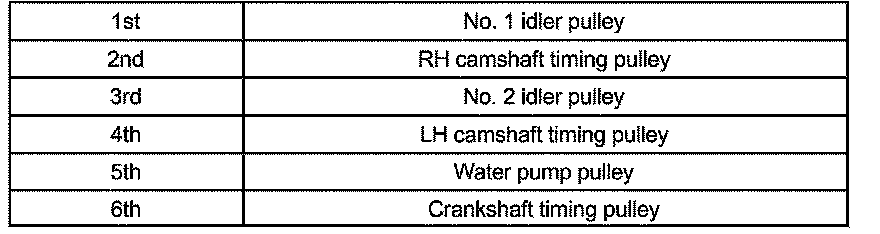 ^ If there is a trace of water and/or oil on the timing belt, repair the leakage and install a new timing belt.