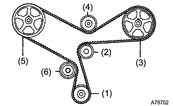 1. If the installation marks have disappeared, put new installation marks on the timing belt before removing.