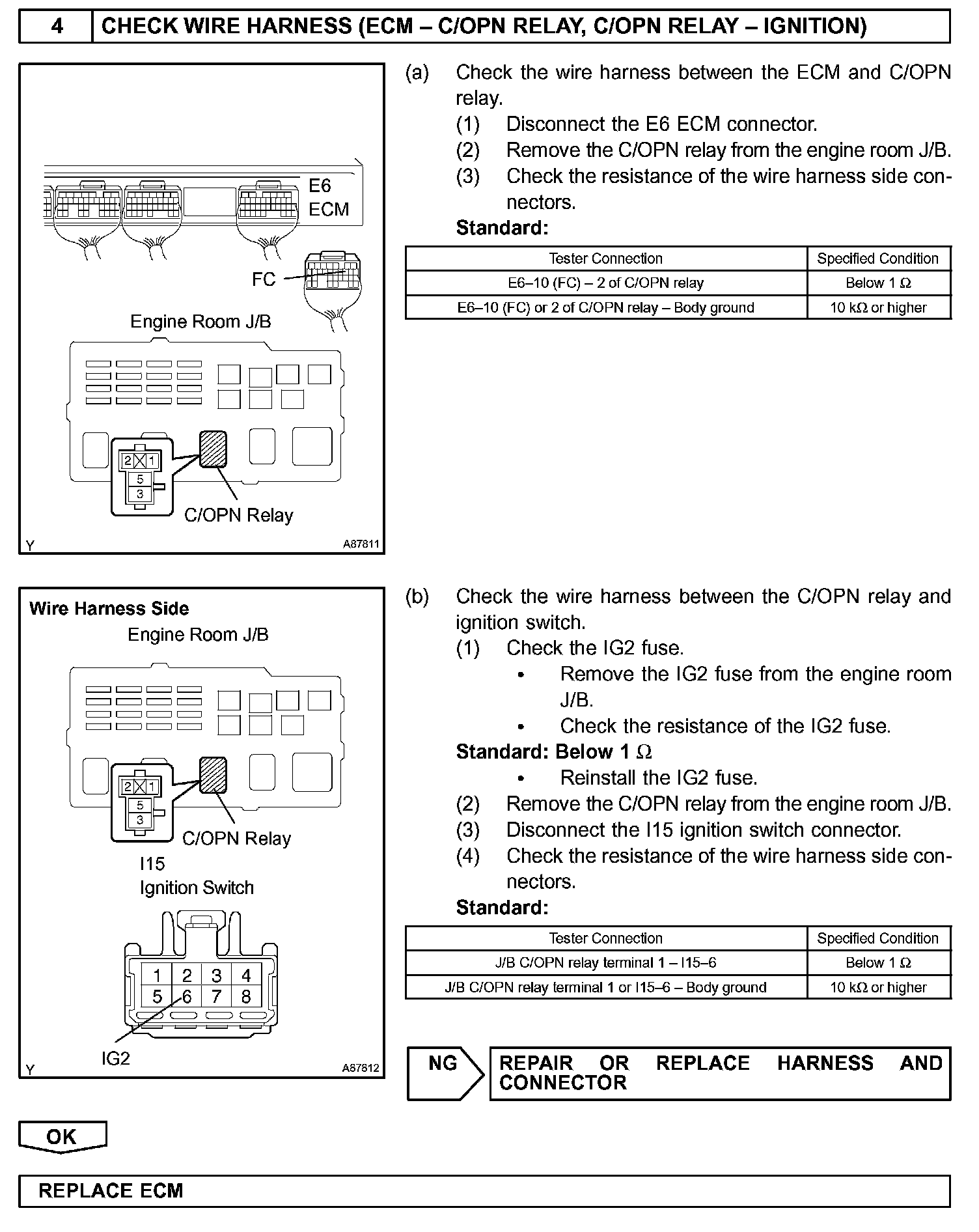While the NE signal is generated and the engine is running, the ECM keeps Tr ON (C/OPN relay ON) and the fuel pump also keeps operating.