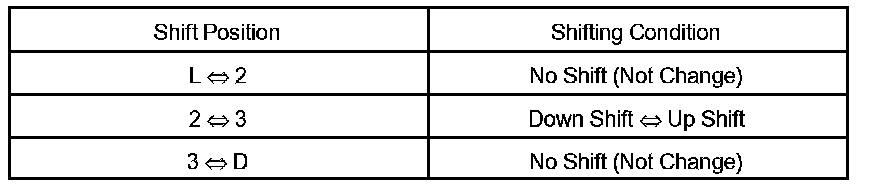 Shifting the shift lever to the L, 2, 3 and D position to check whether the shifting condition changes the table.