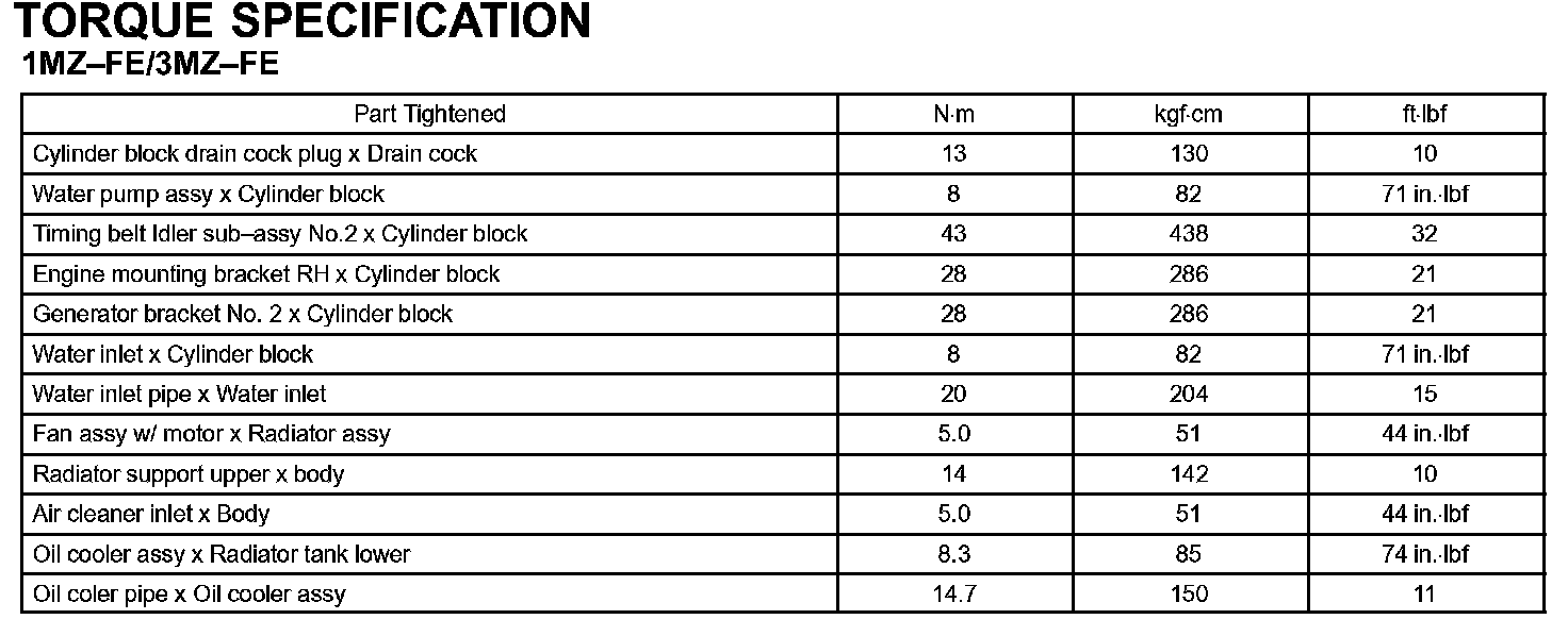 Cooling - Torque Specification: