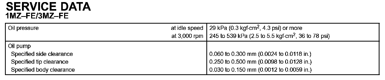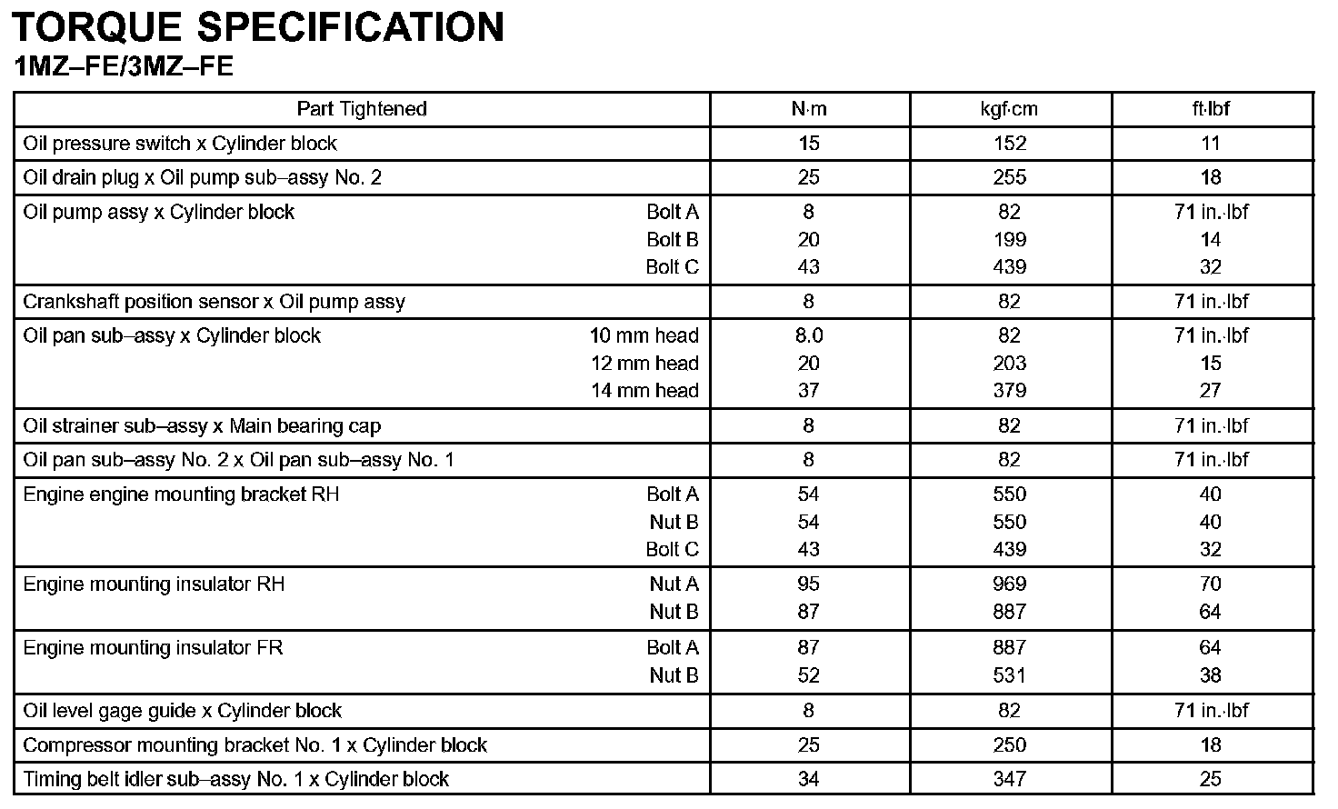 Lubrication - Torque Specification Part 1: