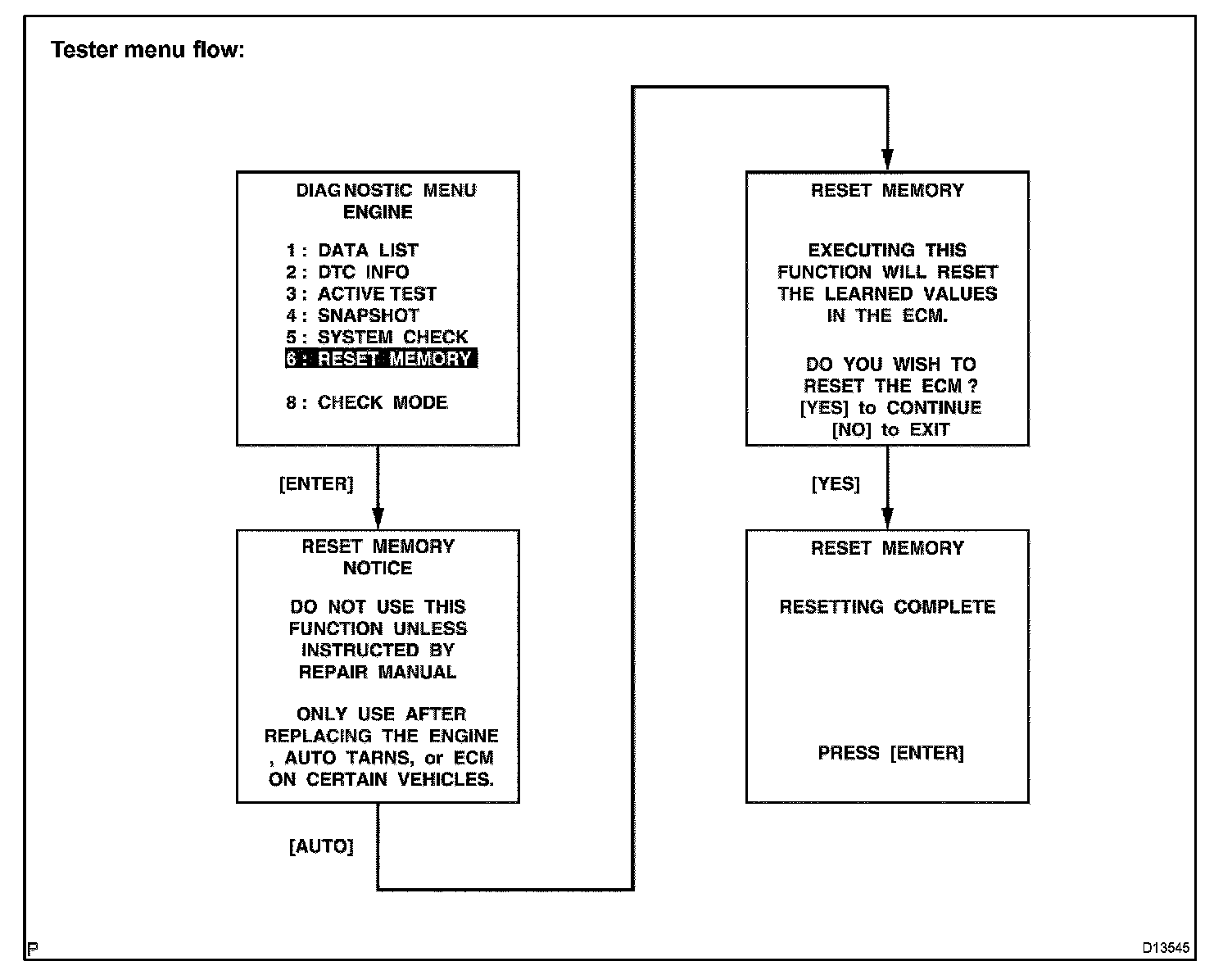 CAUTION: After performing the RESET MEMORY, be sure to perform the ROAD TEST described earlier.