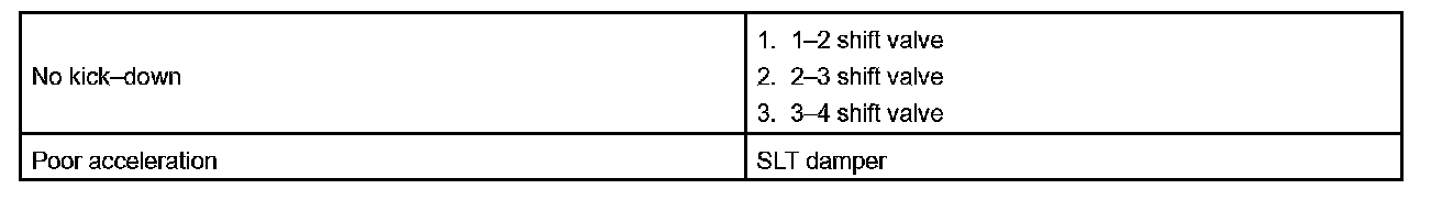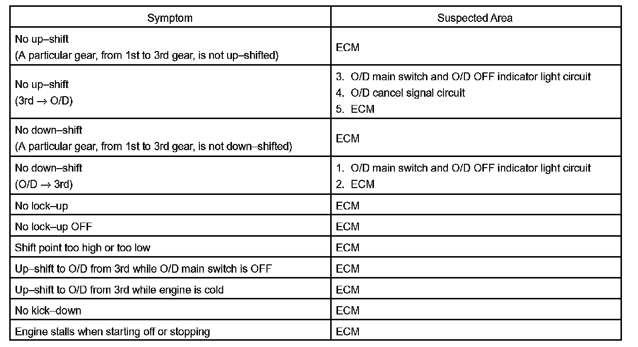 PROBLEM SYMPTOMS TABLEIf a normal code is displayed during the DTC check but the trouble still occurs, check the circuits for each symptom in the order given in the charts and proceed troubleshooting.