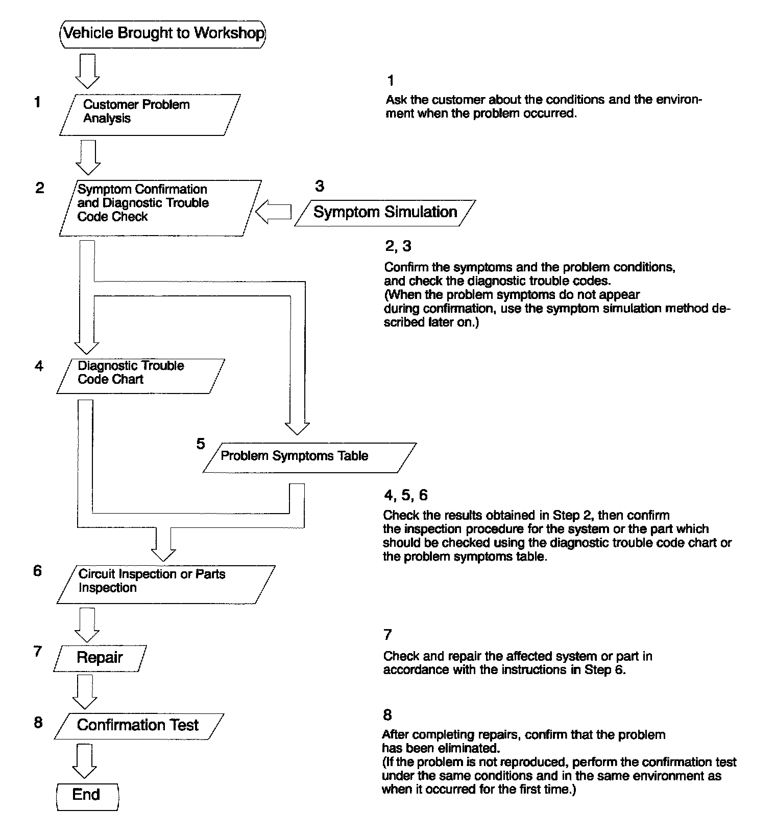 HOW TO PROCEED WITH TROUBLESHOOTING Carry out troubleshooting in accordance with the procedures. Here, only the basic procedures are shown. Details are provided in Diagnostics section, showing the most effective methods for each circuit. Confirm the troubleshooting procedures first for the relevant circuit before beginning troubleshooting of that circuit.