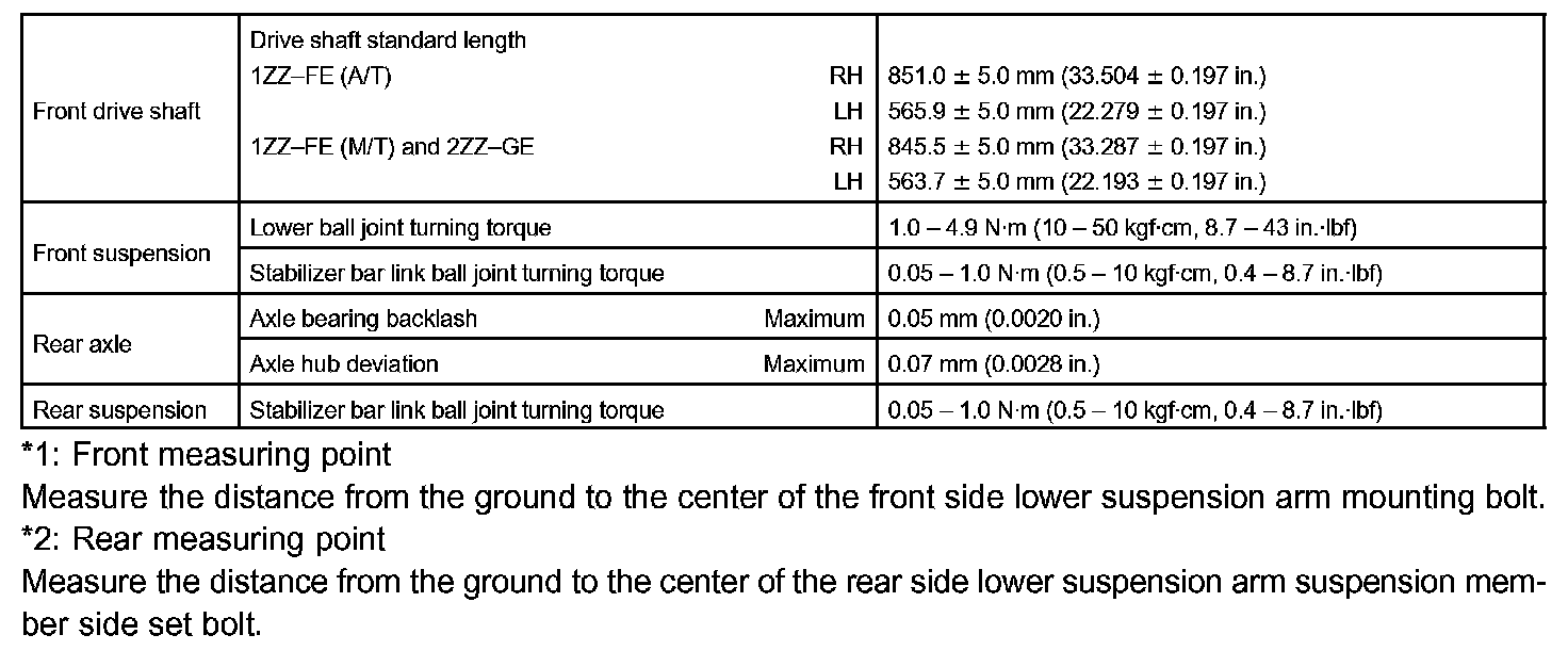 Suspension And Axle - Torque Specification Part 1: