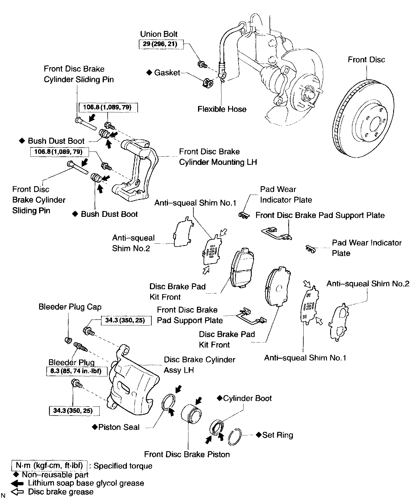 a. Apply disc brake grease to each anti-squeal shim No.1.