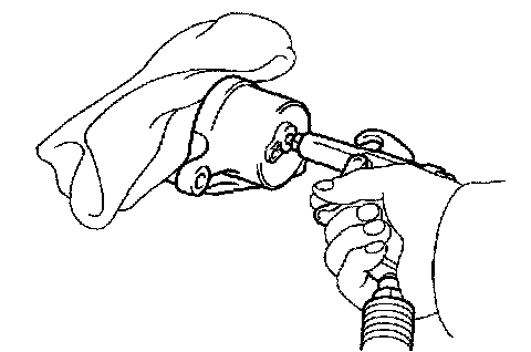 CAUTION: Do not place your fingers in front of the piston when using compressed air.