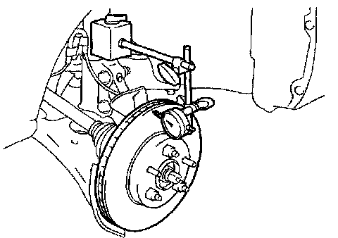 b. Using a dial indicator, measure the disc runout 10 mm (0.39 inch) away from the outer edge of the disc.