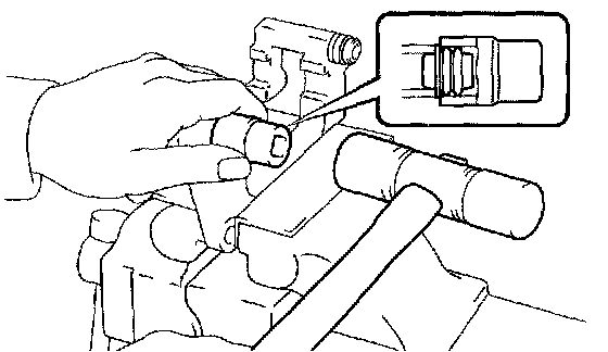 c. Using a socket wrench (19 mm) and hammer, drive the 2 bush dust boots to the disc brake cylinder mounting.