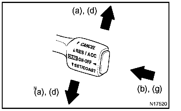 a. Keep the cruise control main switch assy to SET/COAST or RES/ACC position and hold it down or hold it up.