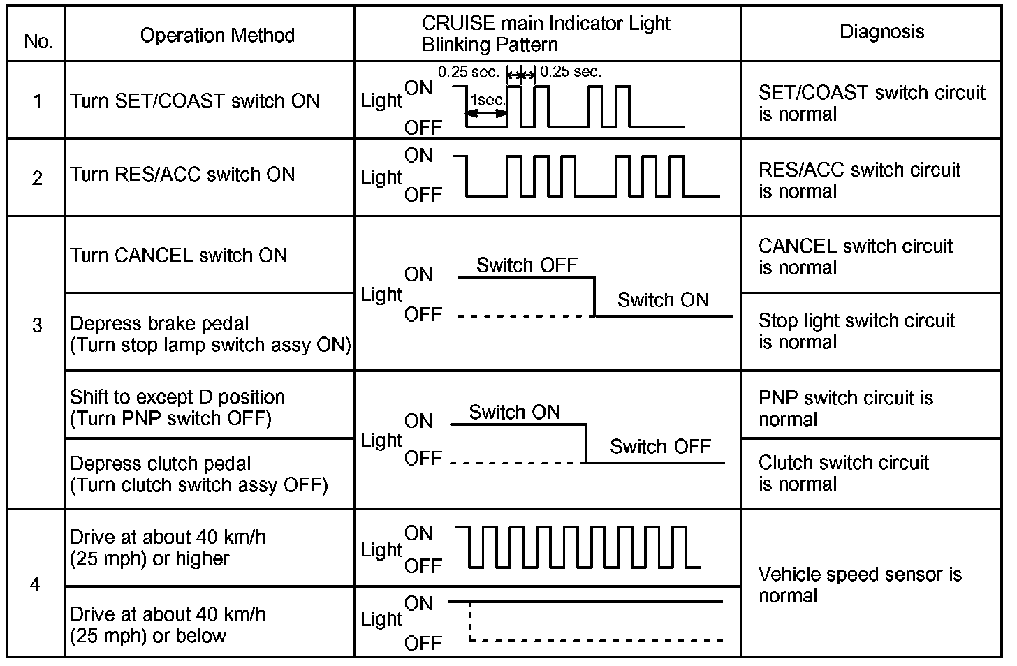f. Read the blinking pattern of the CRUISE main indicator light.