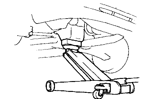 b. Place a wooden block between the jack and engine, and set the jack, then remove the 4 bolts, the 2 nuts and engine mounting insulator RH.