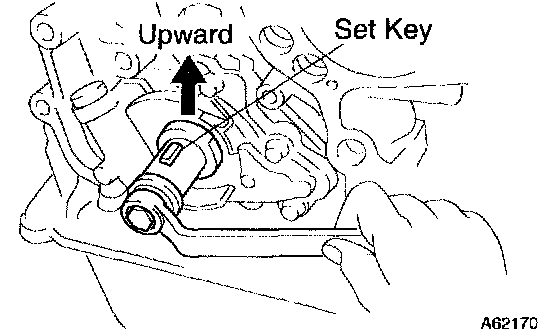 2. Using a crankshaft pulley bolt, turn the crankshaft and set the set key on the crankshaft upward.