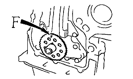 a. Remove the timing chain with the crankshaft timing gear plying screwdrivers as shown in the illustration.