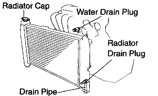 b. Loosen the radiator and engine drain plugs, and drain the coolant.