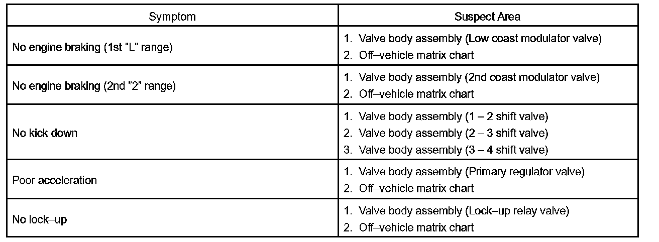 PROBLEM SYMPTOMS TABLEHINT: If a normal code is displayed during the DTC check but the trouble still occurs, check the circuits for each symptom in the order given in the charts and proceed to the relevant troubleshooting.