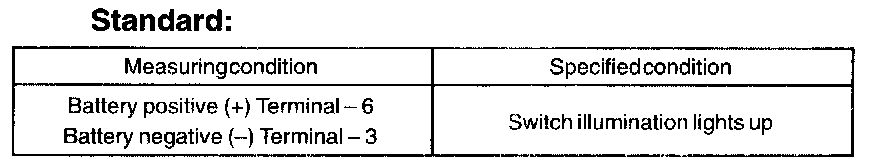 INSPECT POWER WINDOW REGULATOR MASTER SWITCH ASSEMBLYa. Inspect the master switch continuity.