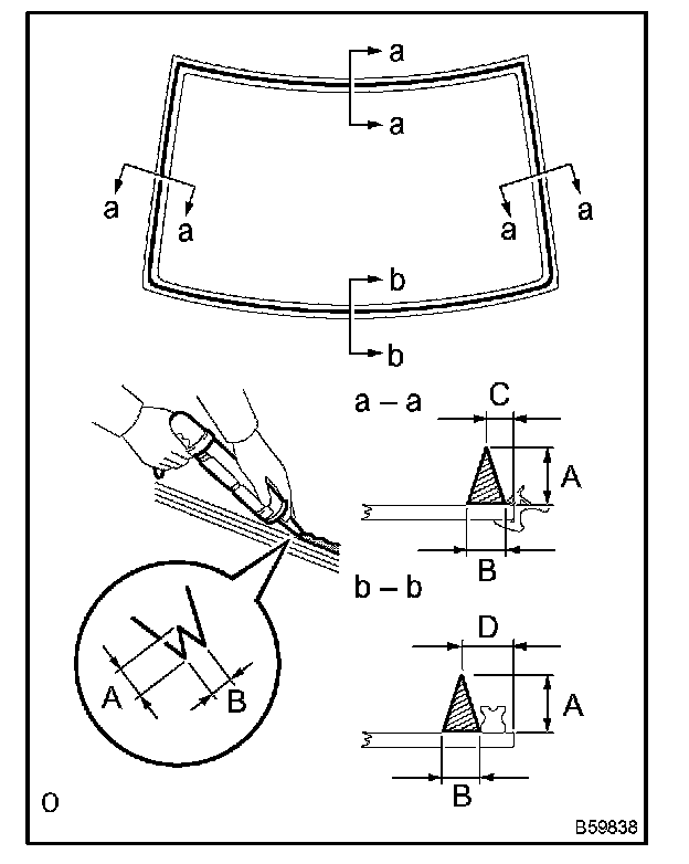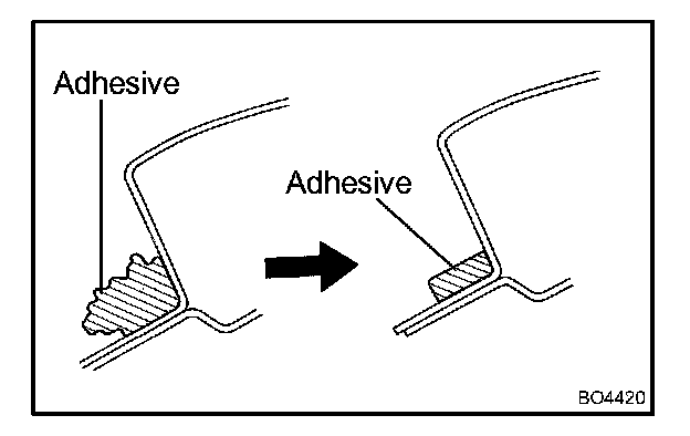 (b) Install a new window glass adhesive dam as shown in the illustration.
