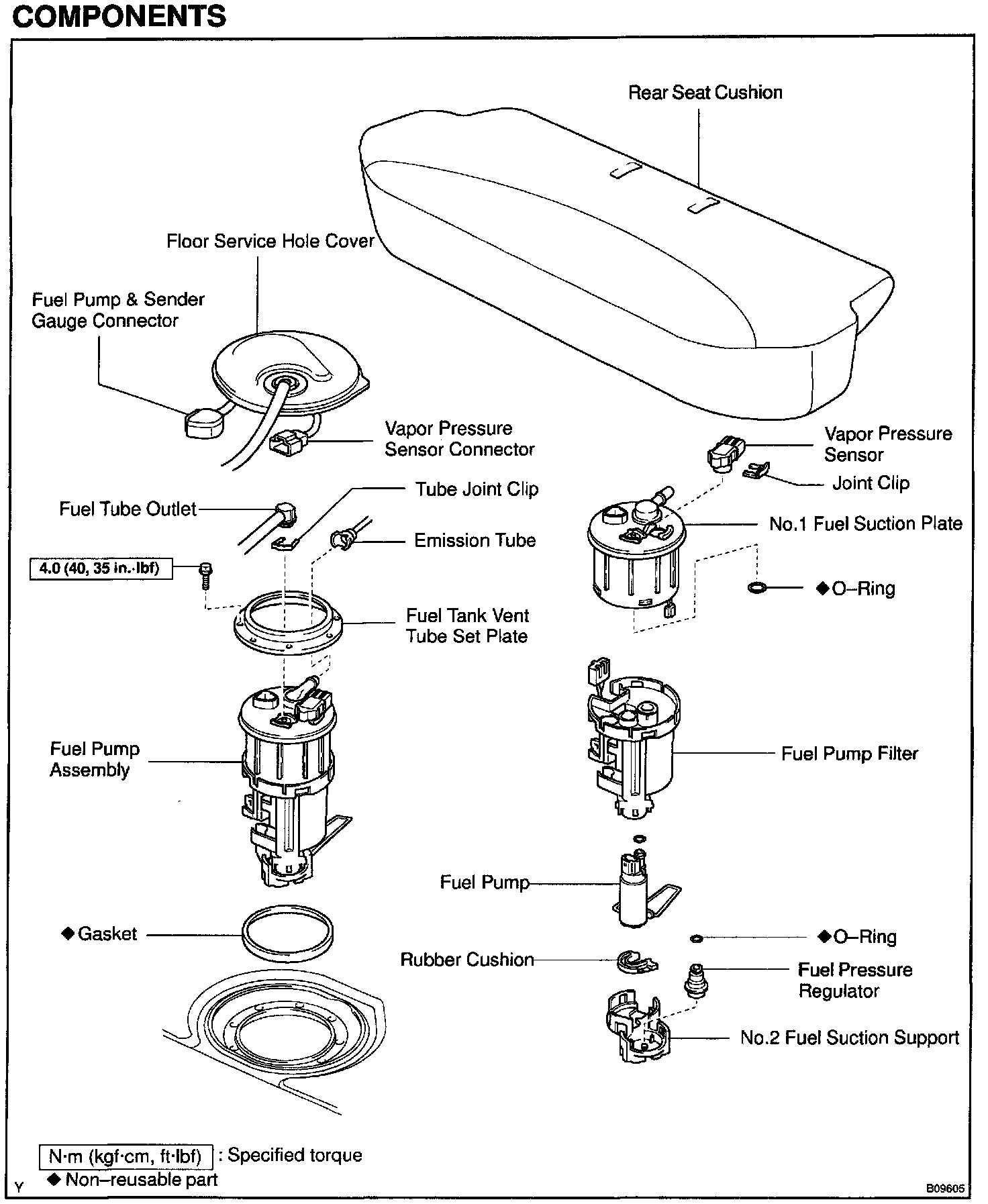 The fuel filter is part of the fuel pump assembly located underneath the rear seat cushion inside the fuel tank.