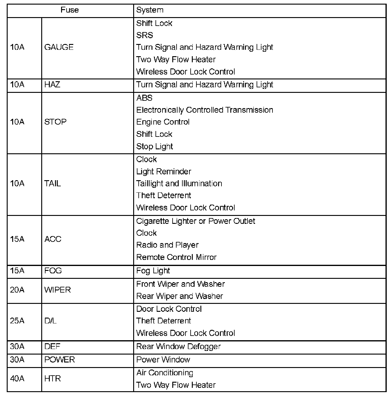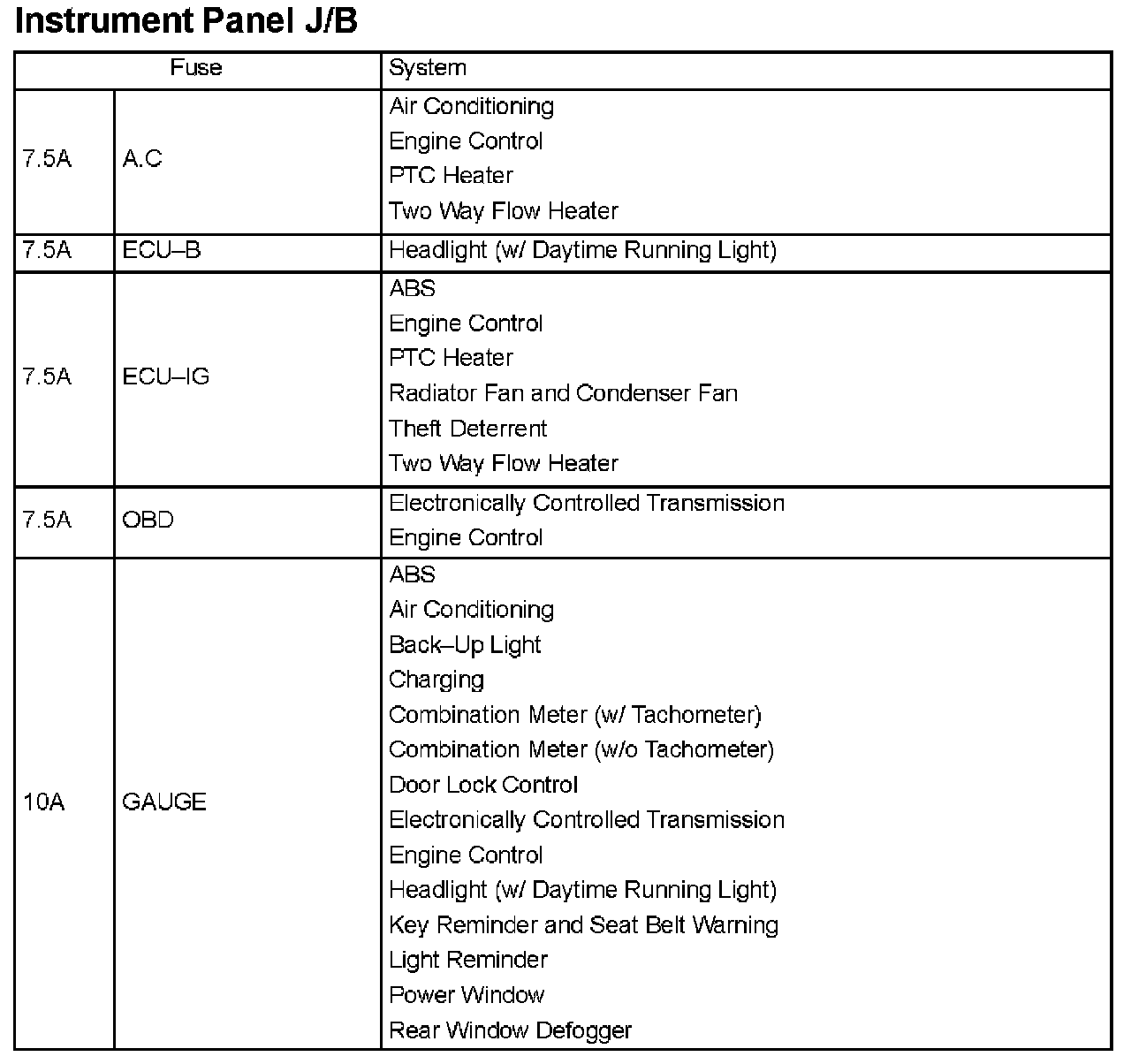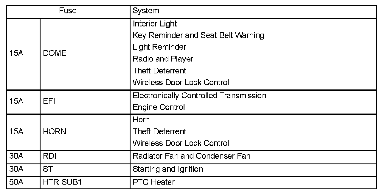 Interior Panel Fuse Identification
