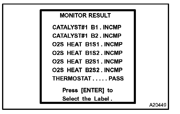 CHECKING MONITOR STATUSHINT: "MONITOR RESULT" indicates normal or malfunction of each component and system when judgment has done.