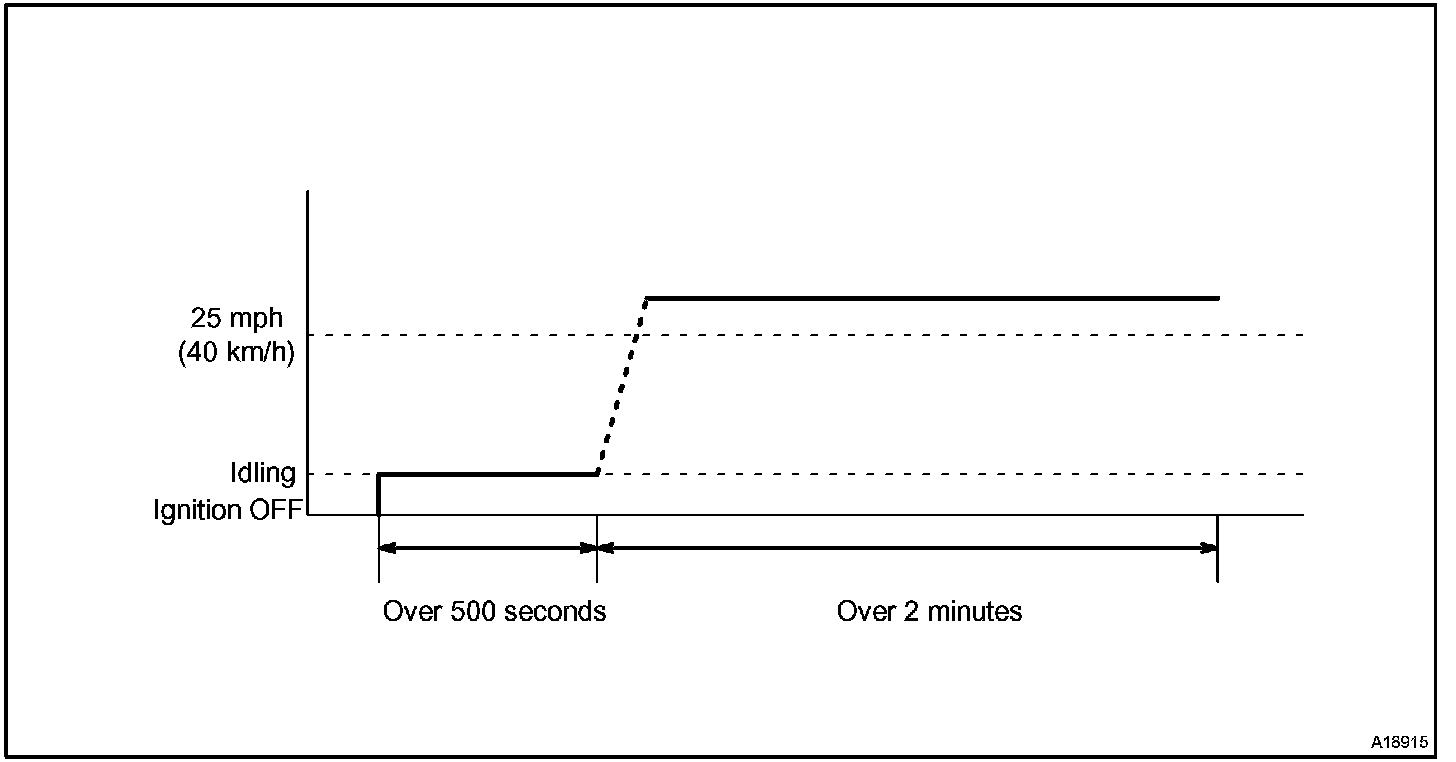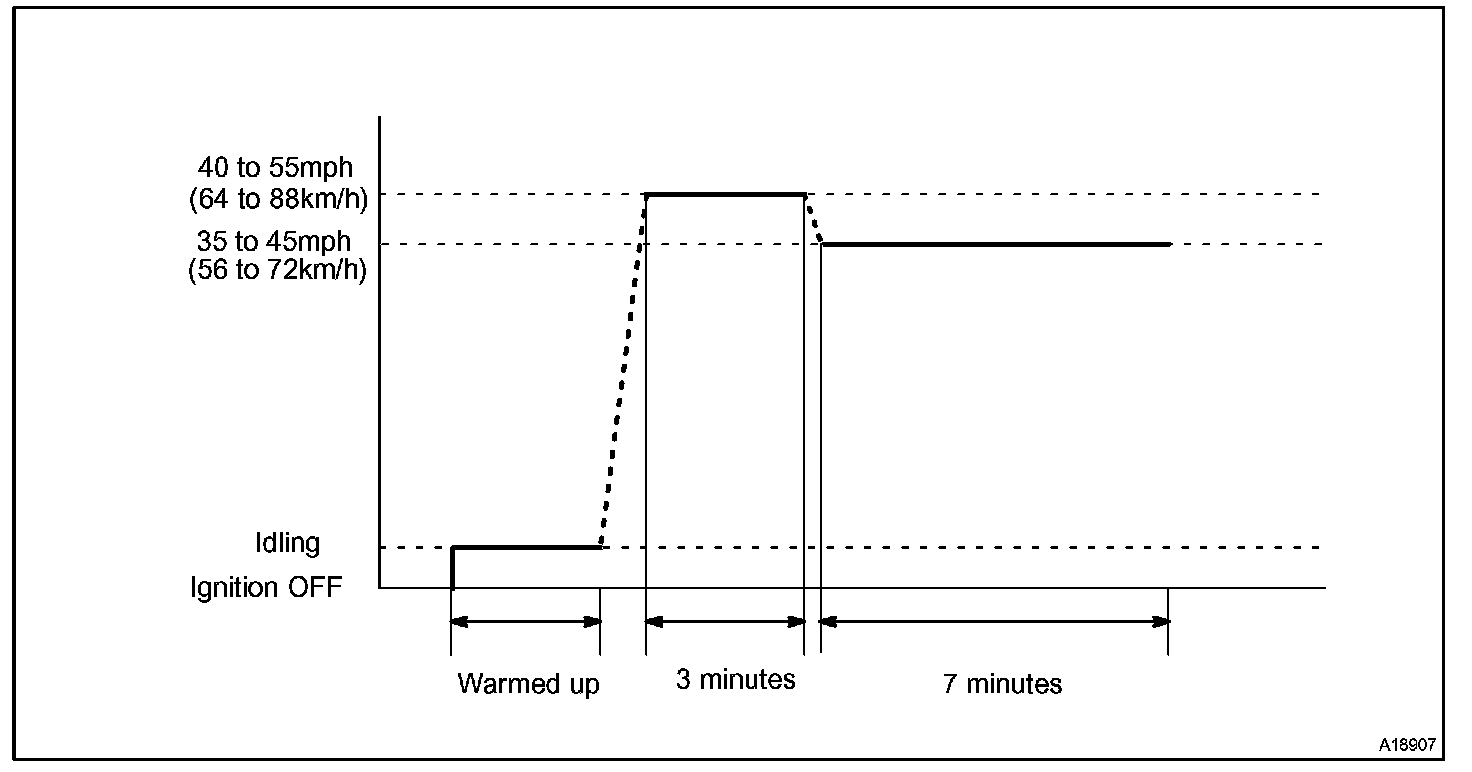 If IAT is less than 10 °C (50 °F) when engine was started, drive the vehicle at 40 - 55 mph (64 - 88 km/h) for additional 4 minutes.