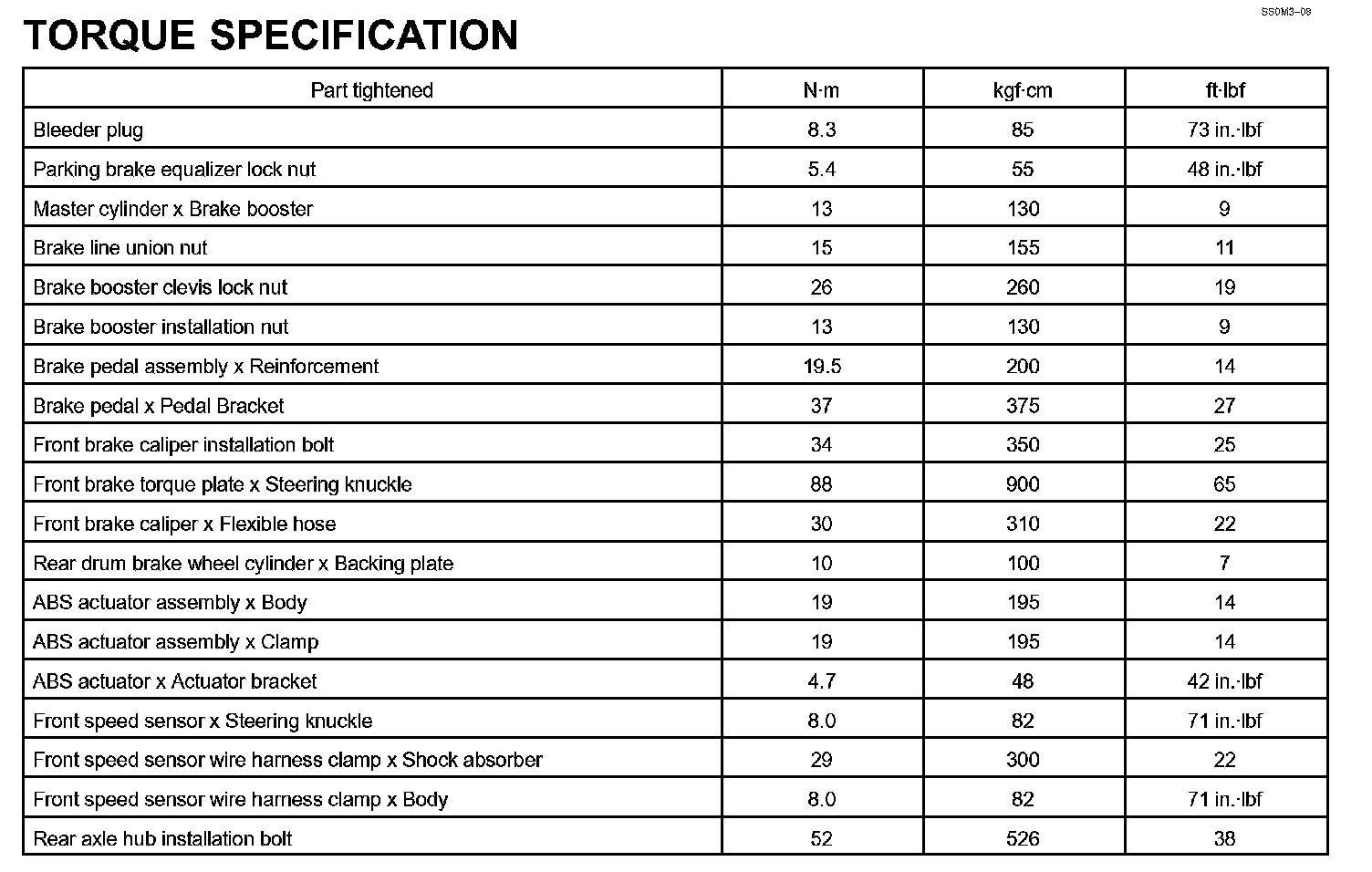 Brake - Torque Specification: