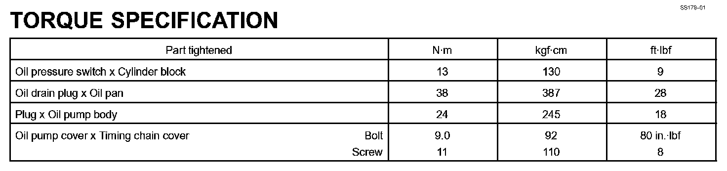 Lubrication - Torque Specification: