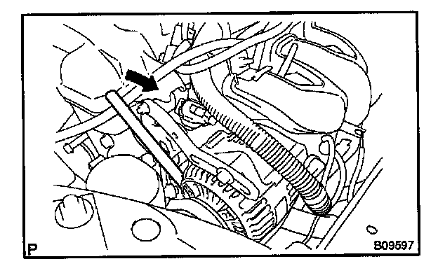 2. Insert a bar between the engine RH mount bracket and the generator, and pull it forward to make the adjustment.