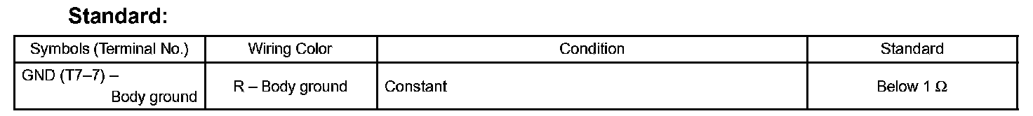 a. Disconnect the T7 amplifier connector, and measure the resistance between the terminal of the wire harness side connector and body ground.