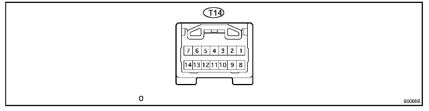 a. Disconnect the T14 ECU connector, and measure the voltage and resistance between each terminal of the wire harness side connector.