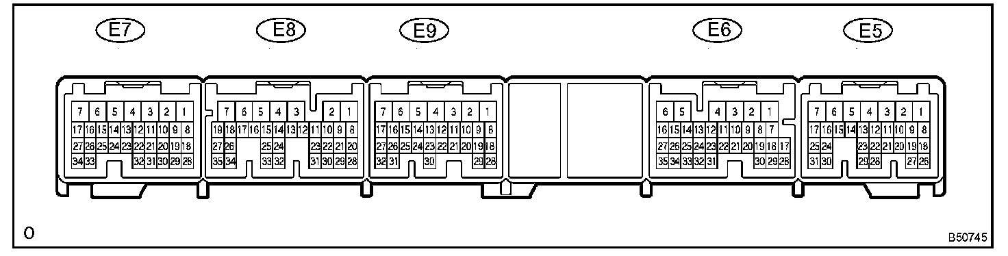 a. Disconnect the E6 and E7 ECM connectors, and measure the voltage and resistance between each terminal of the wire harness side connectors.