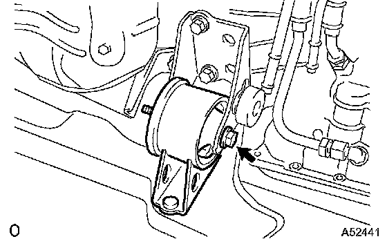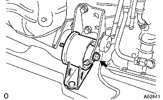 b. Remove the bolt and disconnect the engine mounting insulator FR.