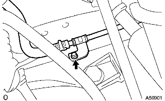 c. Remove the bolt and disconnect the steering gear return hose clamp from the frame.