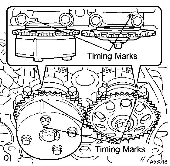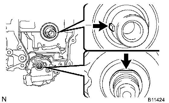 1. Align the timing marks of the camshaft timing sprockets and bearing caps (No. 1 and No. 2).