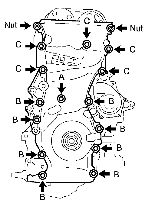 43 Nm (438 kgf-cm, 32 ft. lbs.) for bolt C