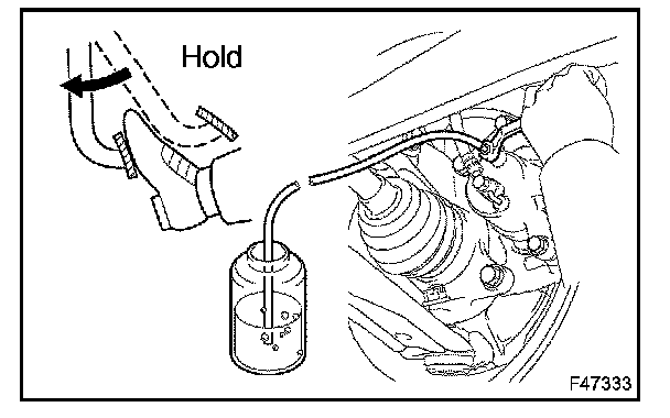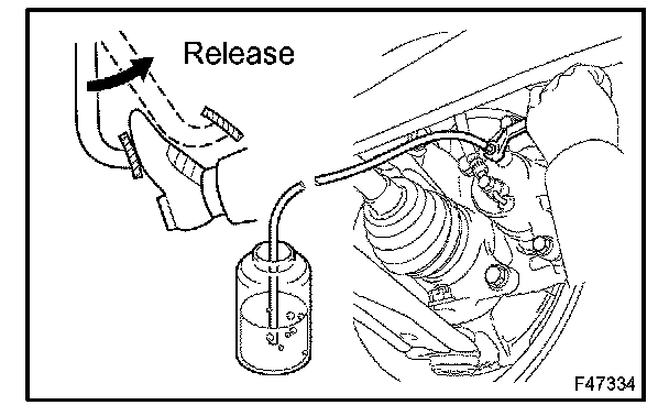 (3) When fluid stops coming out, tighten the bleeder plug and release the brake pedal.