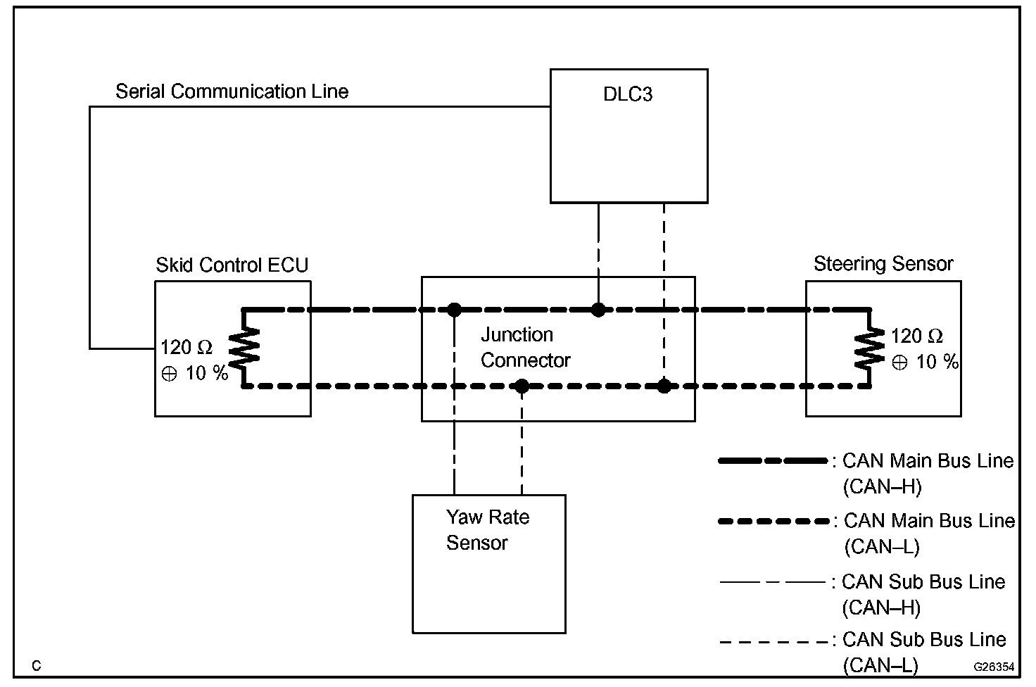 1. Sub bus line is a wire harness which diverges from the main bus line, which is the main bus of the CAN bus, to an ECU or sensor.