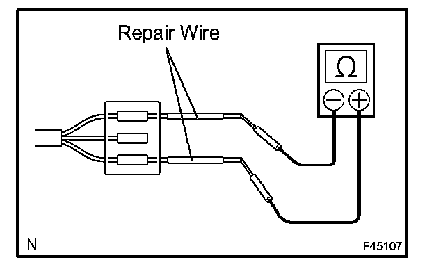 b. If it is impossible to check resistance from the back of the connector, use a repair wire to check it.