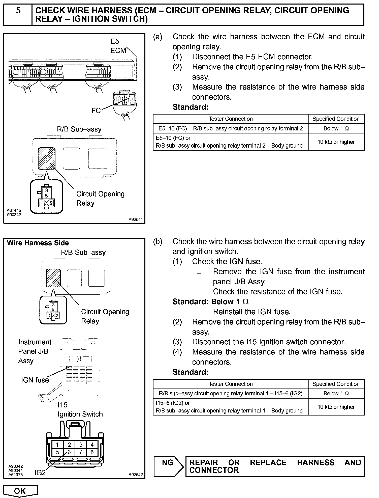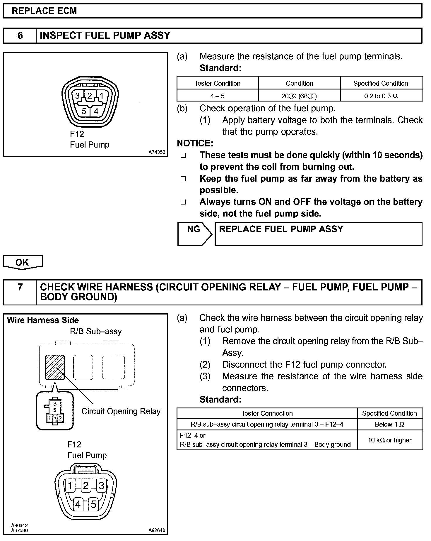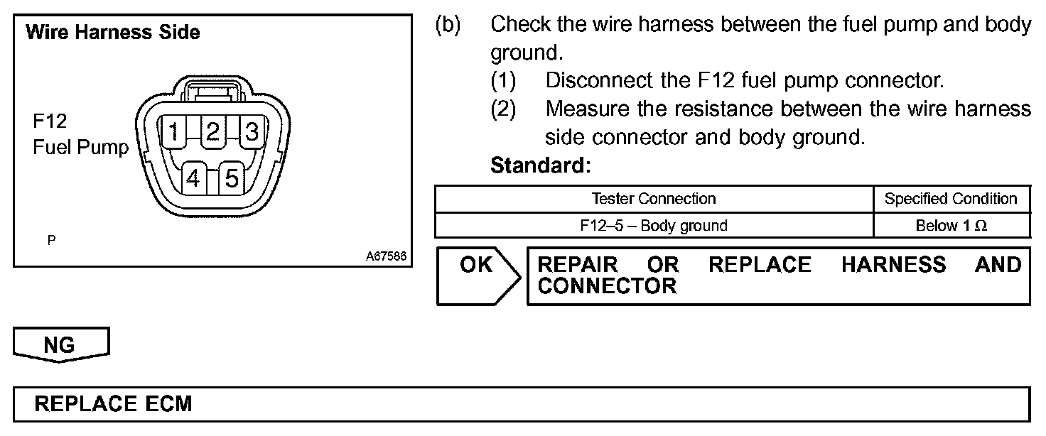 While the NE signal is generated and the engine is running, the ECM keeps Tr ON (Circuit Opening relay ON) and the fuel pump also keeps operating.