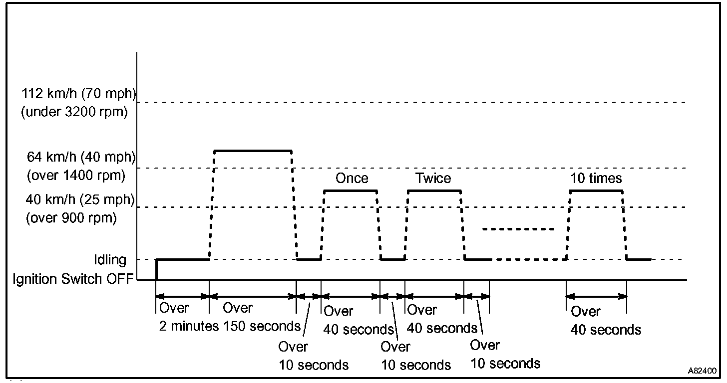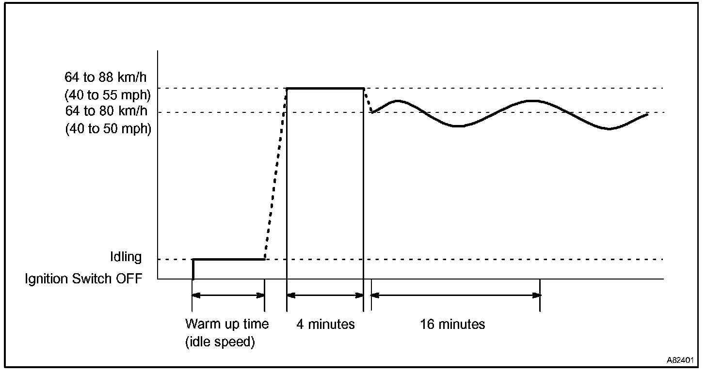 If IAT was less than 10°C (50°F) when the engine was started, drive the vehicle at 40 to 55 mph (64 to 88 km/h) for an additional 4 minutes.
