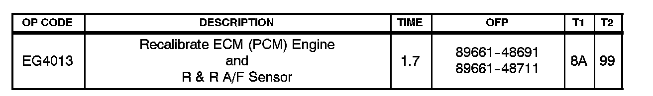 2. Perform ECM (PCM) recalibration (see Calibration Procedure) with New Calibration ID as shown above in Calibration Information table.