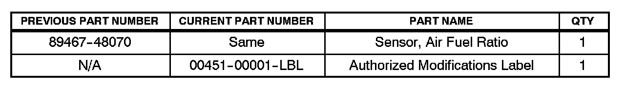 This repair is covered under the Toyota Specified Major Emission Control Component Warranty. This warranty is in effect for 96 months or 80,000 miles, whichever occurs first, from the vehicle's in-service date.