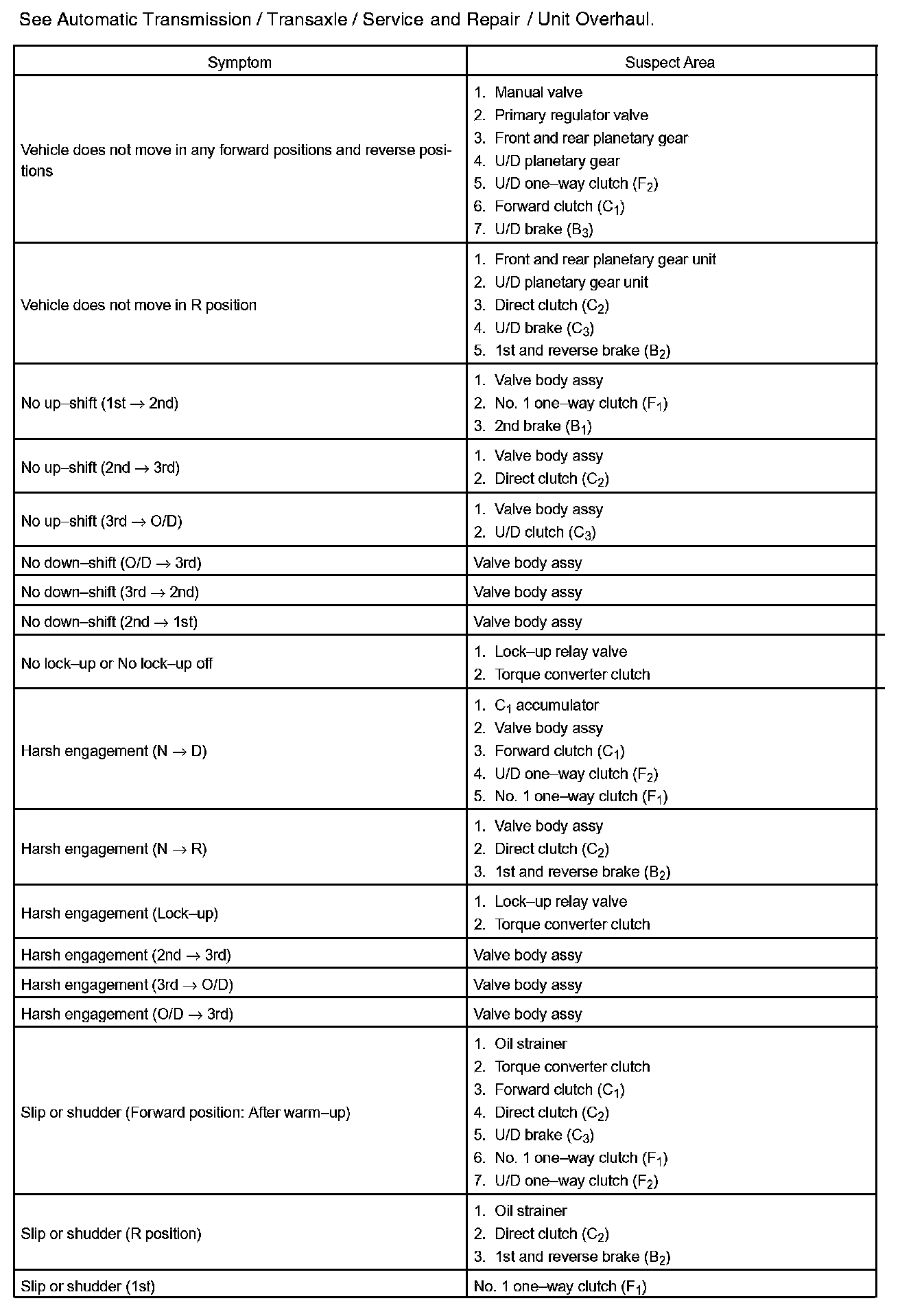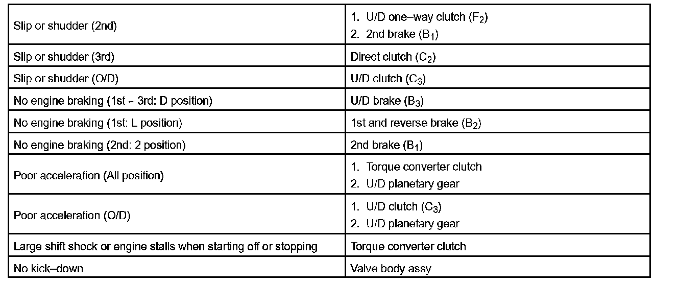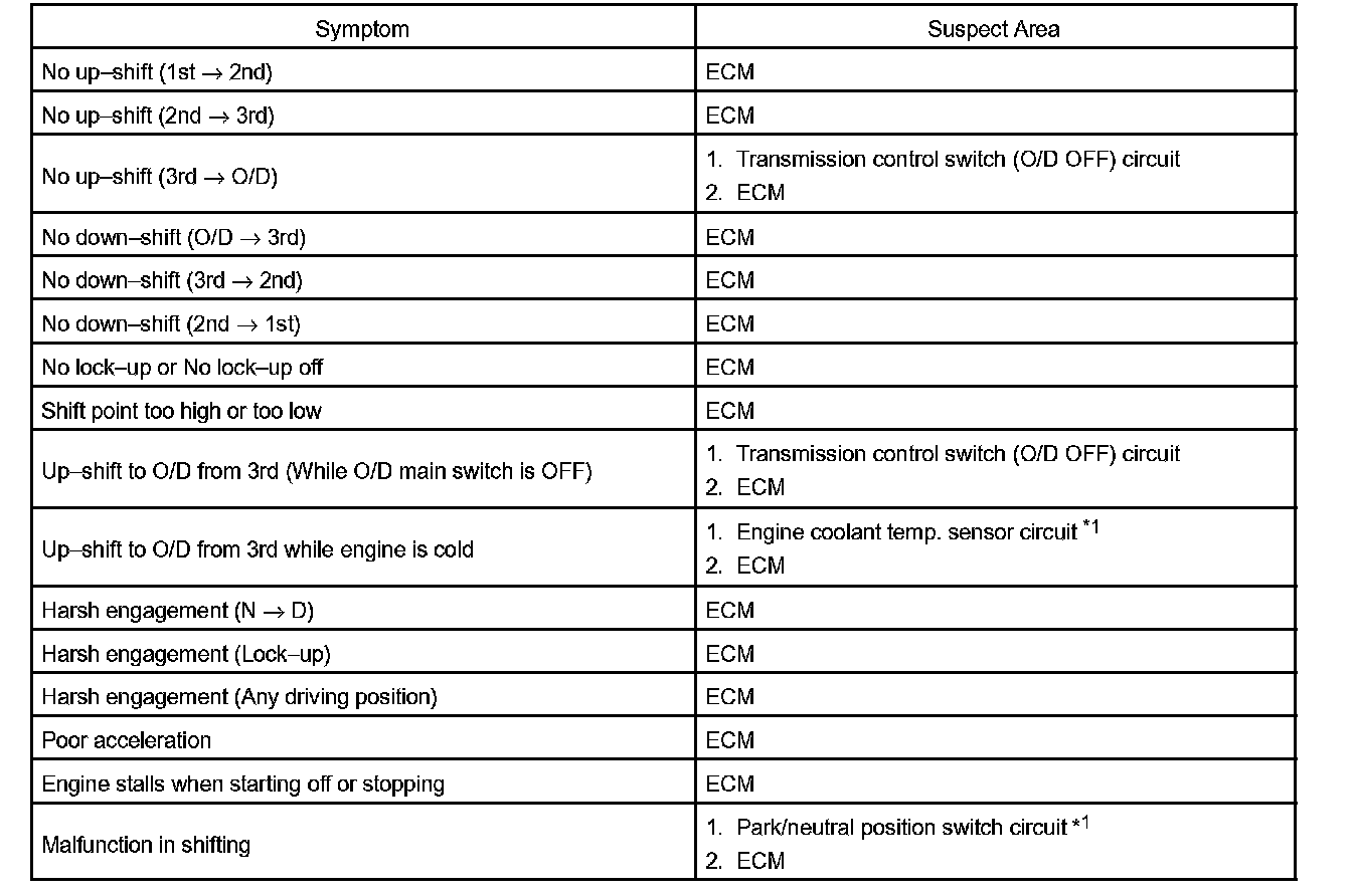 PROBLEM SYMPTOMS TABLEHINT: If a normal code is displayed during the diagnostic trouble code check although the trouble still occurs, check the electrical circuits for each symptom in the order given in the charts and proceed to the given troubleshooting.