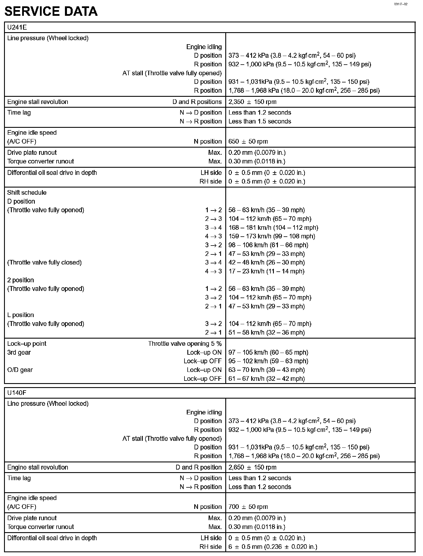 Automatic Transmission/Transaxle - Service Data Part 2: