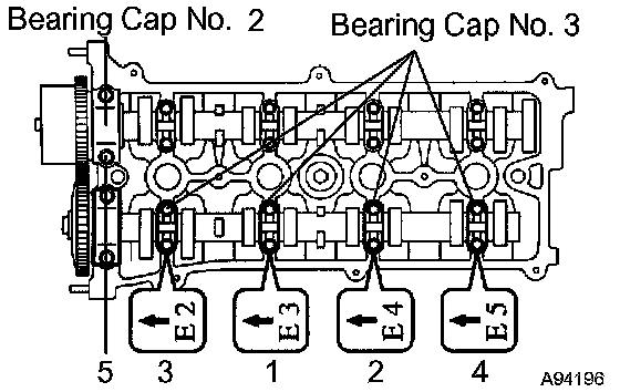 30 Nm (306 kgf-cm, 22 ft. lbs.) for bearing cap No. 2